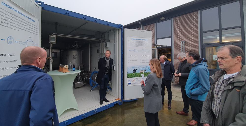 Koos Oosterhaven licht pilot project rond indikken van melk op de boerderij toe