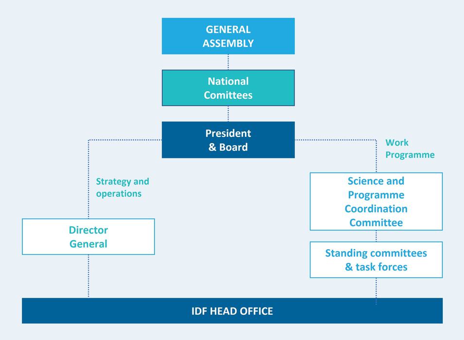 IDF is een ledenorganisatie, waarvan landen lid zijn via Nationale Comité’s, waarbinnen op nationaal niveau zuivelsector gerelateerde stakeholders participeren. De precieze invulling daarvan kan per land verschillen. De Nationale Comités vormen de ruggengraat van IDF. Zij worden vertegenwoordigd in de General Assembly (GA), het hoogste orgaan binnen IDF.
